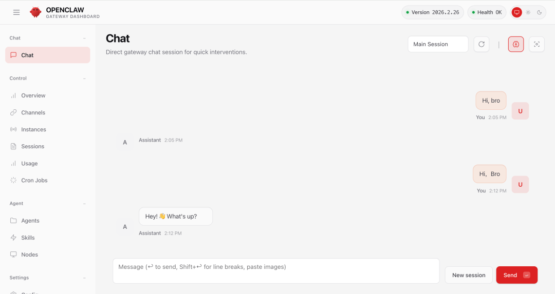 安装完成后,浏览器会自动打开控制台:[http://127.0.0.1:18789](http://127.0.0.1:18789)