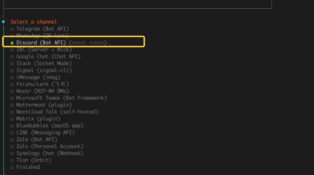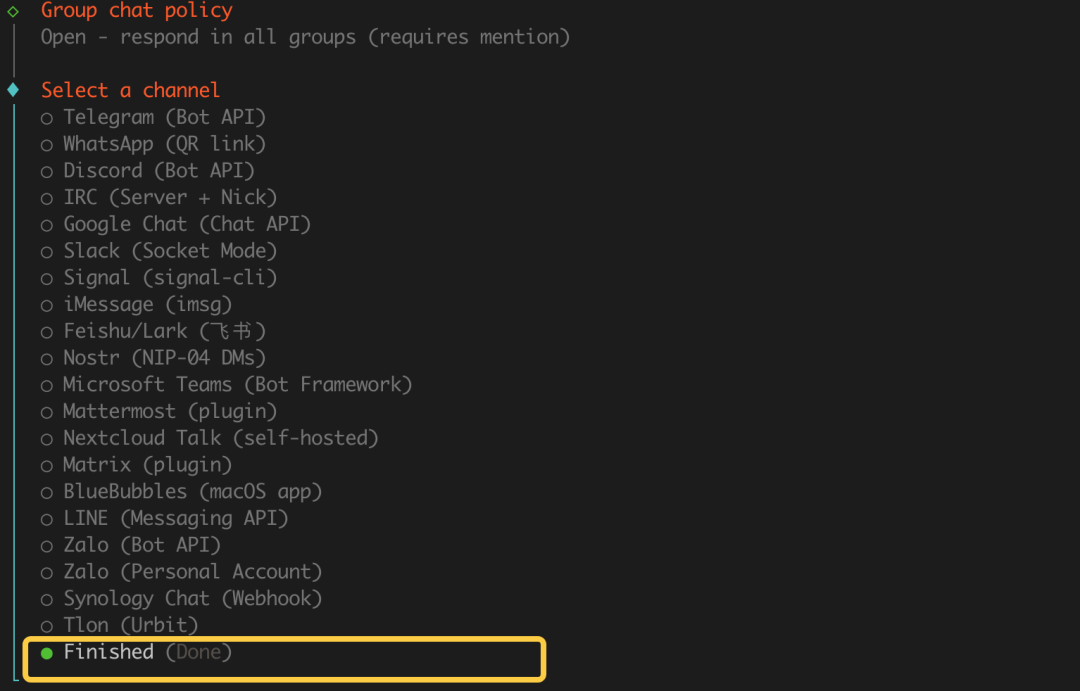 *注:后续配置也可在 Web UI 的“Channels”菜单中修改。*