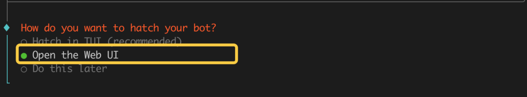8. 运行方式 -> 选 `Hatch in TUI` (推荐)