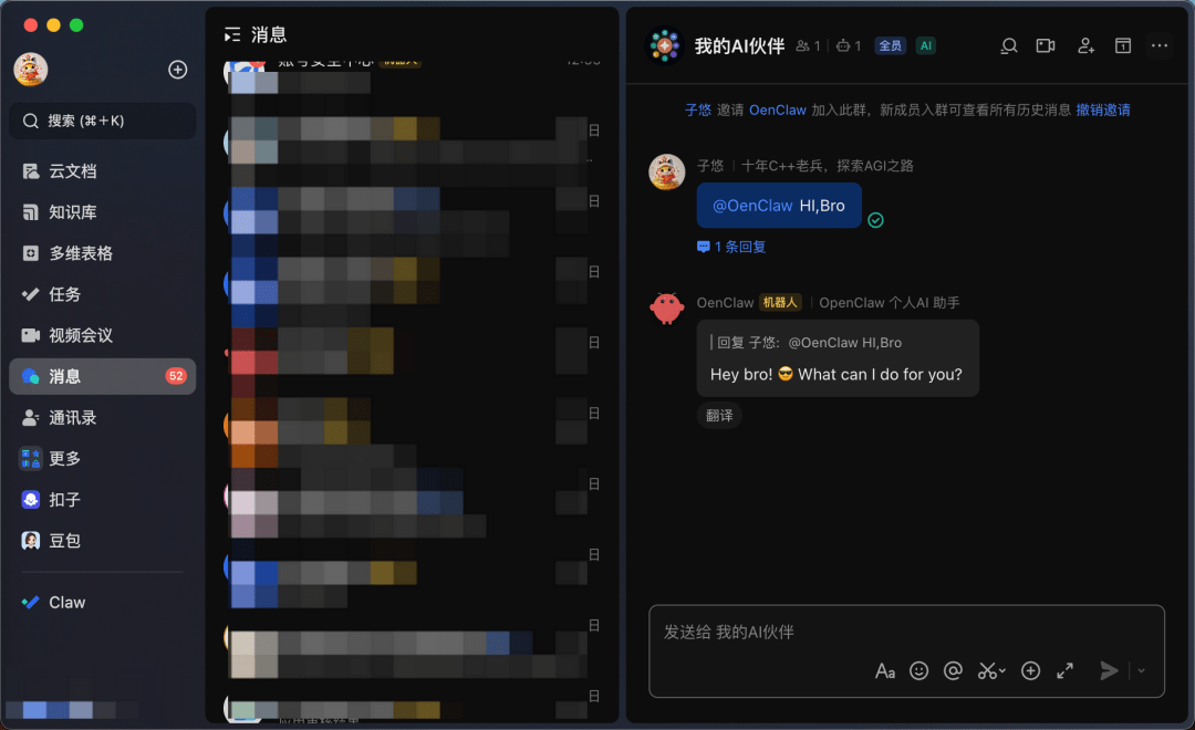 现在可以在钉钉(手机或电脑端)中直接与机器人聊天,或将其拉入群组 @它进行对话。