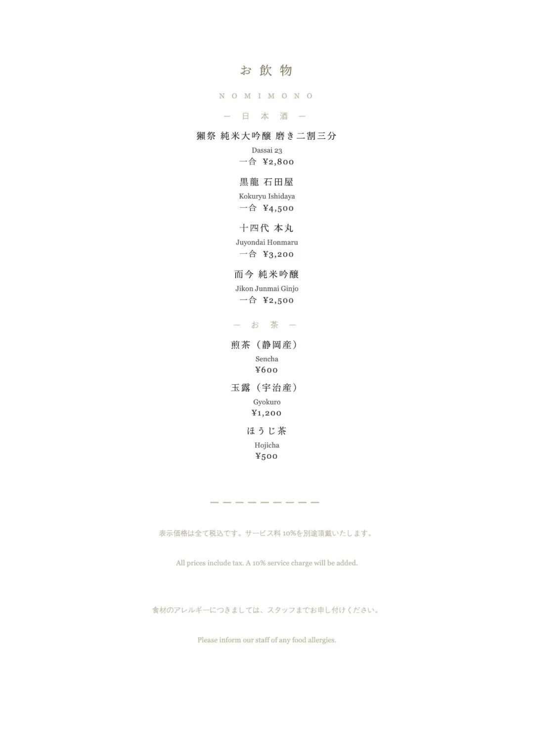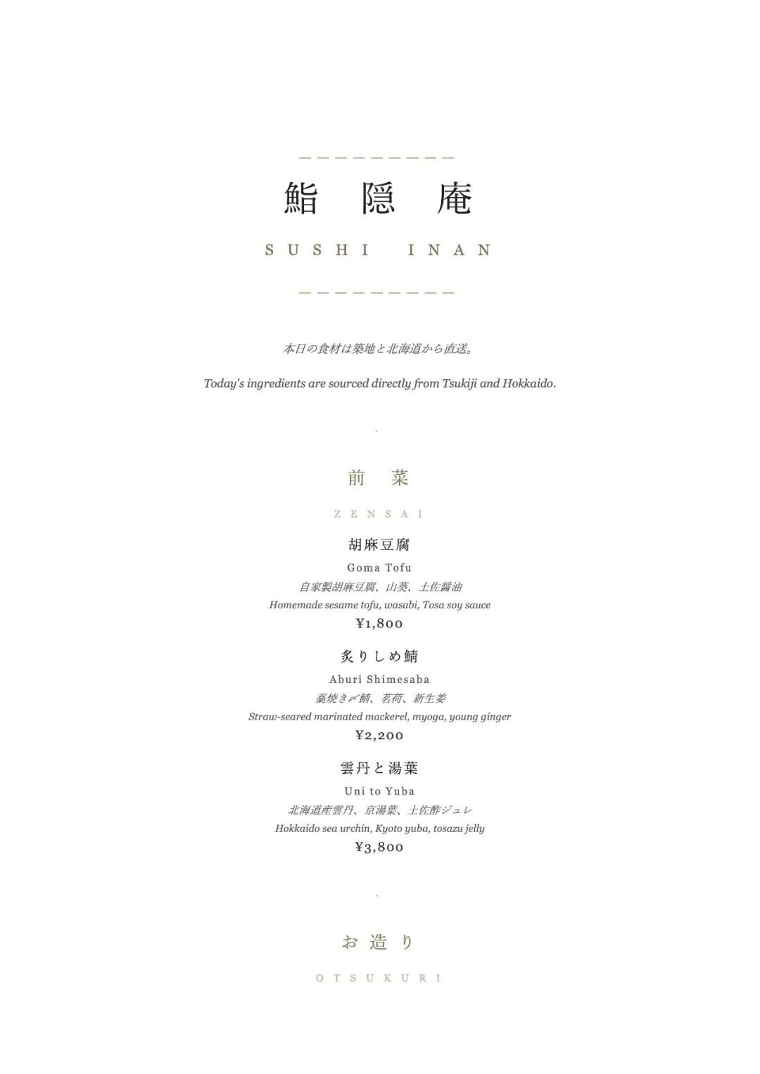 > Query:为高端 Omakase 日料餐厅体验打造一份精致、高端的菜单,呈现奢华、优雅的质感,具备餐厅级专业水准,布局简洁、措辞考究。需包含以下板块:时令刺身、寿司、烤物、前菜、主厨招牌套餐、甜品及饮品。